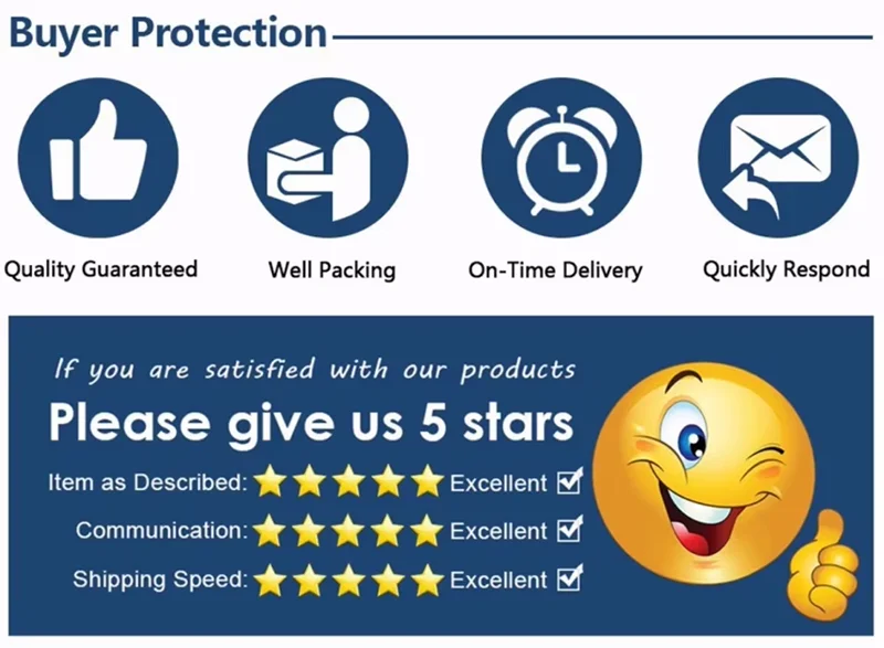 8.Please give 5 stars feedback if you satisfy our products,it is very important for us.If you have any question,please contact us,we will serve for you on AliExpress.
